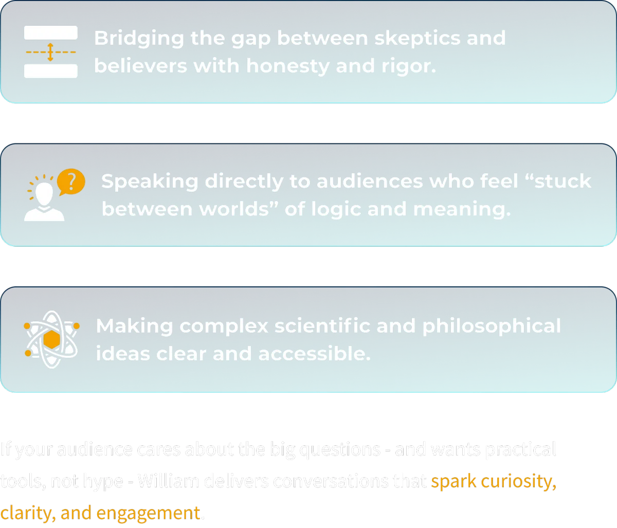 William Truax is a researcher, writer, and author of Reality 2.0, a groundbreaking book for thoughtful seekers who refuse to choose between scientific truth and life’s deeper meaning.